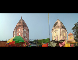 Named after its famous landlord, on the banks of the Jalangi river at Ghurni, lies the famous city of Krishnanagar, also equally famous for its clay creations. The Rajbari built here during the reign of Zamindar Krishna Chandra Roy may be currently reduced to ruins, but the remnants of past glory lives on in exquisite carvings of the river palace.